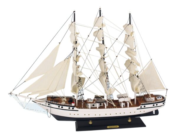 Elegantní model plachetnice Denmark je vyroben z kvalitního dřeva a doplněn o realistické plátěné plachty. Díky svému detailnímu zpracování a působivým rozměrům se stane výraznou ozdobou každého interiéru – ať už obývacího pokoje, kanceláře nebo stylové restaurace.
