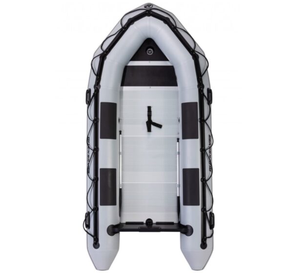 A QUICKSILVER 365 SPORT HD felfújható csónak alumínium padlóval tökéletes partner a horgászok és búvárok számára, akik megbízhatóságot és stabilitást keresnek a vízen. Ez a modell a robusztus konstrukciót a gondtalan vízi tevékenységekhez szükséges praktikus részletekkel ötvözi. Főbb jellemzői: