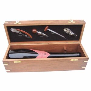 Fából készült borosdoboz kiegészítőkkel