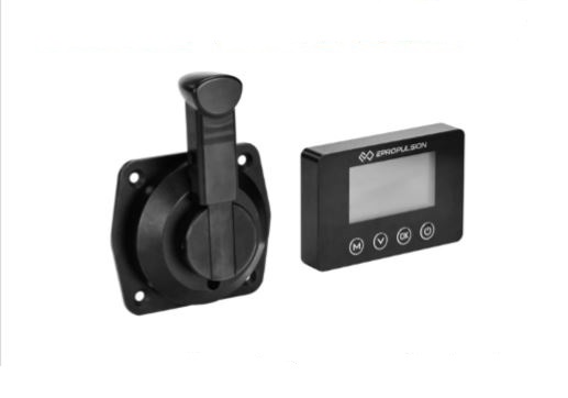 Bočné diaľkové ovládanie s odnímateľnou rukoväťou a aretáciou nulovej polohy, s displejom pre elektromotory Spirit, Navy a Pod Drive.