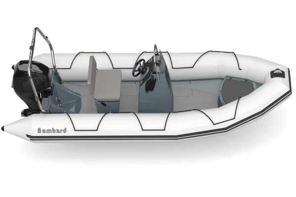 Čln Bombard Explorer 500 Strongan v svetlo sivej farbe je ideálny pre aktívnych nadšencov a dobrodruhov. Vďaka robustnému laminátovému trupu a vztlakovým valcom je pripravený aj na náročné podmienky na vode.