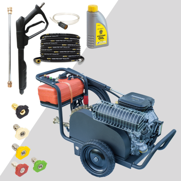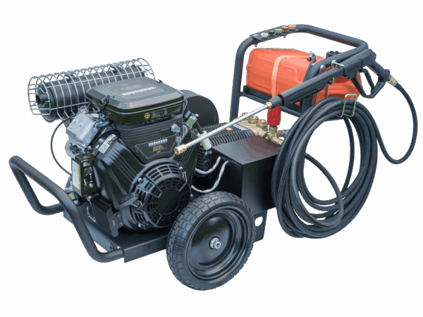 Vďaka výkonnému benzínovému motoru Briggs & Stratton Vanguard dosahuje maximálny tlak 350 bar (5 000 PSI) a prietok 22 l/min, čo zaručuje vynikajúci čistiaci výkon aj pri dlhodobom profesionálnom používaní. Zariadenie je plne nezávislé od elektrickej siete a vhodné do akéhokoľvek prostredia.