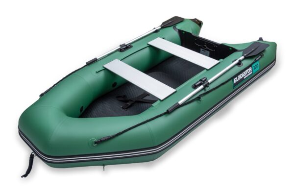 Gladiator AK300 AD je zelený nafukovací čln s vysokotlakovou podlahou a nafukovacím kýlom. Ideálny pre rodinné výlety, rybolov alebo ako tender k jachte. Je veľmi ľahký a kompaktný, s montážou, ktorá nezaberie viac ako 15 minút. Jednoduchá obsluha a minimálne nároky na uskladnenie.
