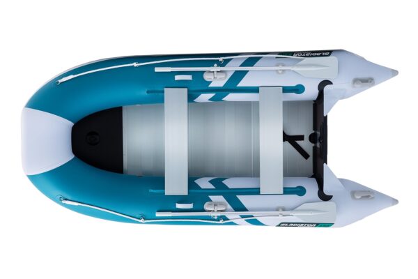 Nafukovací čln Gladiator CLASSIC B330 AL s pevnou hliníkovou podlahou a kýlom v tvare V zaručuje vynikajúce jazdné vlastnosti aj vo vlnách. Tento čln, ideálny pre rodinné výlety, rybárčenie a vodné športy, poskytuje stabilitu a výkon. Robustná konštrukcia s priestrannou prednou časťou v tvare D pohodlne prepraví až 5 osôb. Napriek svojej pevnosti je montáž člna rýchla, zaberie približne 15 minút. Použité materiály, valce z PVC 850g/m2 a dno z PVC 1100g/m2, zabezpečujú dlhú životnosť.