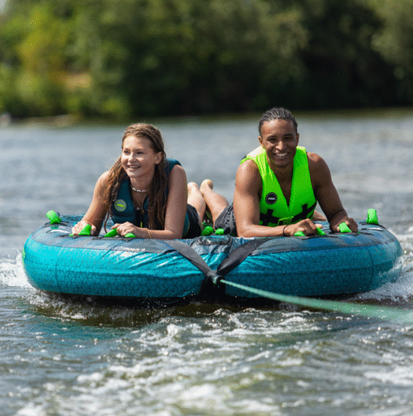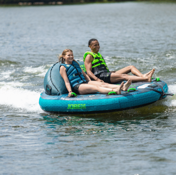 Jobe Compound Towable 2P ponúka všestrannú zábavu na vode s unikátnou funkciou: zadná opierka sa dá vyfúknuť a uložiť pomocou zipsu, čím vznikne plochá vlečná nafukovačka. Tento inovatívny dizajn umožňuje pohodlnú jazdu aj dynamický zážitok na rovnej plošine.