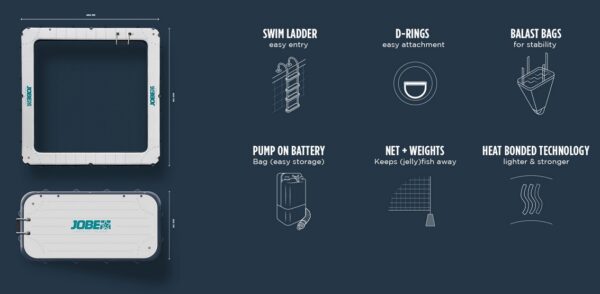 S nafukovacím bazénom JOBE Infinity 4,0 x 4,0 m si vytvoríte vlastnú oázu pokoja priamo na vode. Tento elegantný bazén, navrhnutý pre bezstarostné plávanie, sa ľahko pripojí k Vašej lodi alebo Infinity platforme. S 2 metre hlbokou sieťou, ktorá účinne chráni pred rybami a medúzami, si môžete užívať krištáľovo čistú vodu bez akýchkoľvek obáv. Ideálne riešenie pre maximálne pohodlie a bezpečnosť na otvorených vodách.