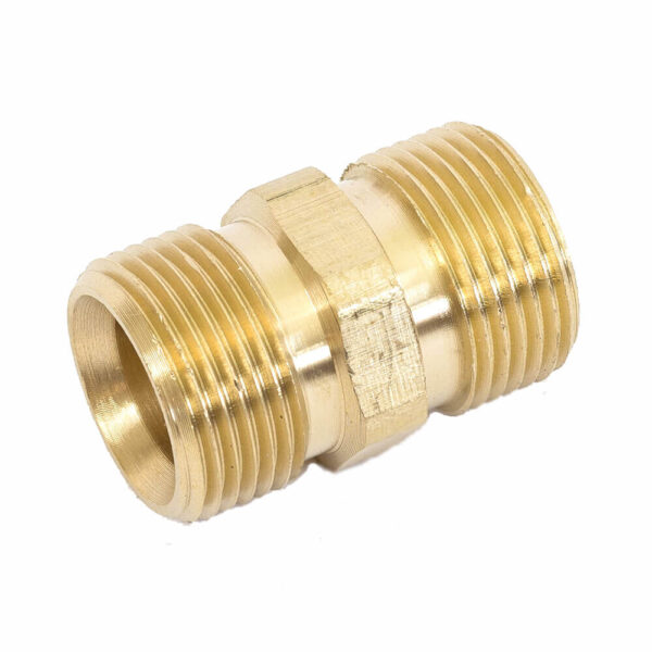 Mosadzná spojka je určená na spoľahlivé spojenie dvoch vysokotlakových hadíc so závitom M22/1.5. Vďaka kvalitnému mosadznému prevedeniu je odolná voči tlaku, opotrebeniu a korózii, čo zaručuje dlhú životnosť aj pri intenzívnom používaní.