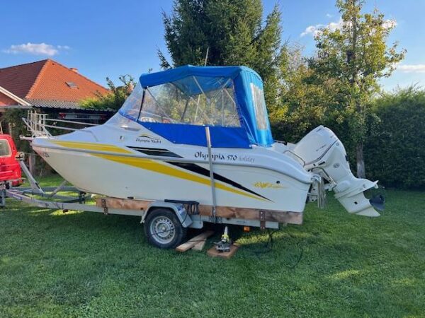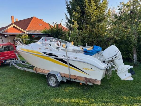 Na predaj kajutový motorový čln OLYMPIA 570 so závesným lodným motorom EVINRUDE E90 DSLAAA.