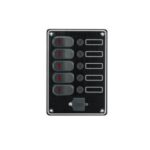 Predstavujeme náš ovládací panel so šiestimi spínačmi, navrhnutý pre spoľahlivé a efektívne riadenie elektrických systémov. Ideálny pre lode, karavany a vozidlá, kde je kľúčová odolnosť a jednoduchá obsluha.