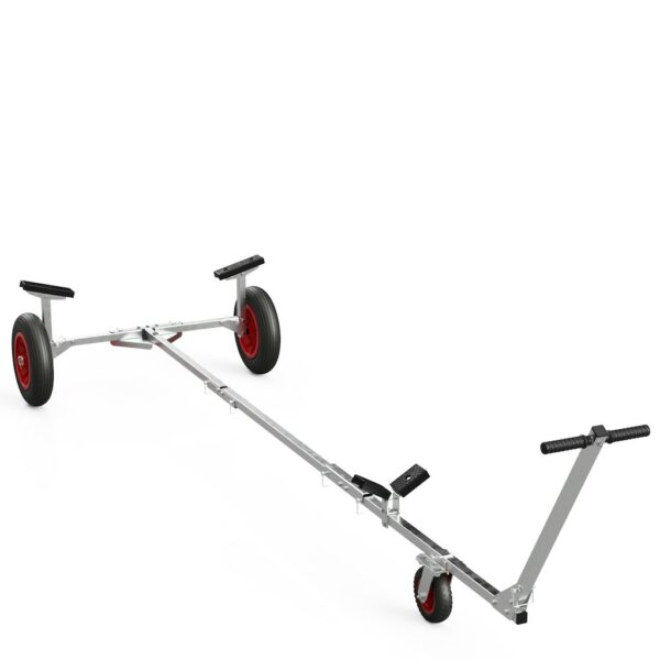 Prepravný vozík SUPROD TR350-L-LU, predĺžená verzia L s tretím kolieskom a zvýšenou rukoväťou, je ideálnym pomocníkom pre jednoduchú manipuláciu s loďou. Umožňuje samostatné spúšťanie a vytiahnutie plavidla z vody. Vďaka skladaciemu dizajnu šetrí miesto v kufri alebo na lodi. Je univerzálny pre nafukovacie člny, rybárske, GRP, hliníkové a plachetnice. Upozornenie: Nie je určený pre cestnú premávku.