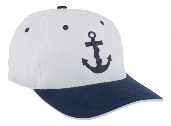 - Dizajn: Biela farba tela šiltovky s modrým šiltom a dominantnou modrou kotvou na prednej časti.