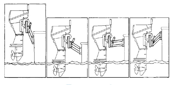 Výkyvný systém z eloxovaného hliníka. Drevo s lakovaním proti slanej vode, pre motory do asi 6 PS a max. 35 kg. Silná pružina umožní zvdvihnutie a spustenie motora bez námahy. Motorová doska z umelej hmoty.
