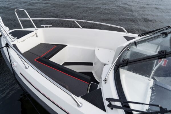 YAMARIN CROSS 64 BR 2024 s motorom YAMAHA F150 XCB je robustný hliníkový čln pre vodné dobrodružstvá. Ponúka bezkonkurenčné ovládanie a výkon vďaka štíhlemu trupu. Komfort pre 8 osôb zaisťuje vyššie hradenie, L-lavica, U-pohovka a úložné priestory. Masívne čelné sklo chráni. Hliníkový trup a sklolaminátová paluba majú vyvážené jazdné vlastnosti. Bezpečnosť podporuje systém Cross Q s 10-palcovým dotykovým displejom (mapy, navigácia) a mobilnou aplikáciou.