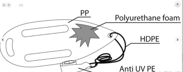 Je vyrobený z vysoko odolného polyetylénu a vnútro je vyplnené ľahkou, ale mimoriadne vztlakovou polyuretánovou penou, čo zaručuje jeho dlhú životnosť a vynikajúce plávacie vlastnosti. Pre jednoduchú manipuláciu a transport je plavák vybavený praktickým ramienkom a odolnou vlečnou šnúrou, ktorá umožňuje jednoduché pripevnenie a efektívne vlečenie osoby v núdzi. Jasná oranžová farba zaisťuje vysokú viditeľnosť za každých podmienok, čo je kľúčové pre rýchlu lokalizáciu počas záchranných operácií.