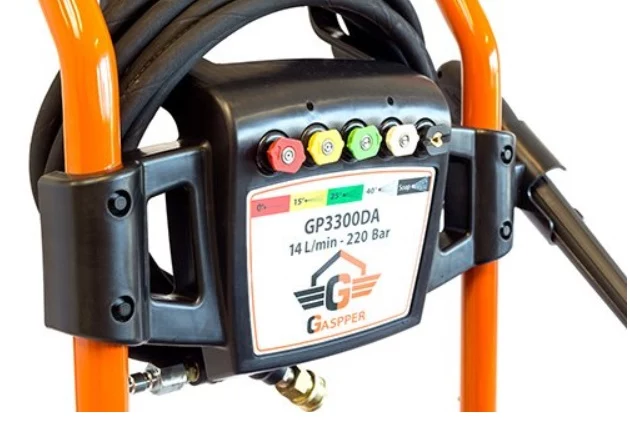 S vysokotlakovým čističom Gaspper GP3300DA je čistenie ľahké a príjemné aj pri väčších plochách. S maximálnym tlakom 220 bar a prietokom 14 l/min. je tento vysokotlakový čistič vhodný na najnáročnejšie čistiace práce. Je to trieda Premium, ktorá sa vyznačuje lepšími parametrami a dlhšou životnosťou oproti triede Hobby. Vysokotlakový čistič je vybavený benzínovým OHV motorom Bridgs&Stratton s reguláciou otáčok a výkonným čerpadlom s plynulou reguláciou tlaku vody, čo je zárukou vyššieho užívateľského komfortu. Jednoduchá údržba celokovového čerpadla s mosadznou hlavou značne predĺžuje dĺžku používania vysokotlakového čističa. Štandardne je toto zariadenie dodávané s 10 m gumenou hadicou, s 0°, 15°, 25°, 40° vysokotlakovou dýzou a dýzou na aplikovanie saponátu samo nasávaním. Pri výrobe kladieme dôraz na jednoduchosť obsluhy, vysokú kvalitu a dlhú životnosť výrobkov. Toto zariadenie Vám pri pravidelnej údržbe poskytne roky bezporuchovej prevádzky.