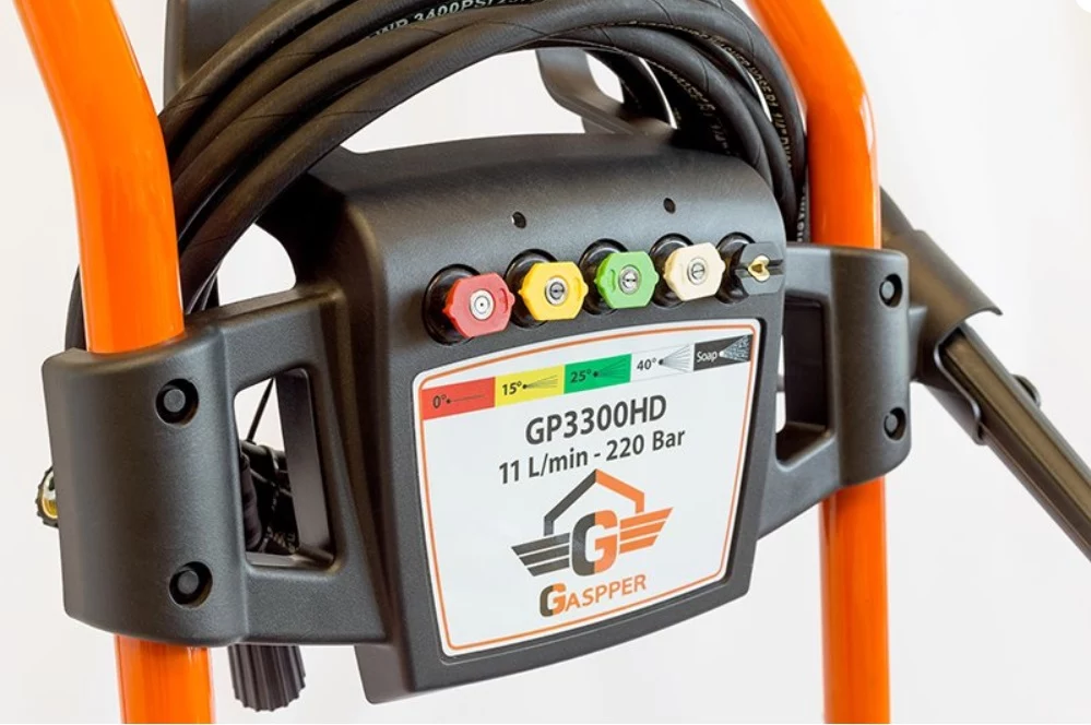 S vysokotlakovým čističom Gaspper GP3300HD je čistenie ľahké a príjemné aj pri väčších plochách. S maximálnym tlakom 220 bar a prietokom 11 l/min. je tento vysokotlakový čistič vhodný na najnáročnejšie čistiace práce. Je to trieda Premium, ktorá sa vyznačuje lepšími parametrami a dlhšou životnosťou oproti triede Hobby. Vysokotlakový čistič je vybavený benzínovým OHV motorom Honda s reguláciou otáčok a výkonným čerpadlom s plynulou reguláciou tlaku vody, čo je zárukou vyššieho užívateľského komfortu. Jednoduchá údržba celokovového čerpadla s mosadznou hlavou značne predĺžuje dĺžku používania vysokotlakového čističa. Štandardne je toto zariadenie dodávané s 10 m gumenou hadicou, s 0°, 15°, 25°, 40° vysokotlakovou dýzou a dýzou na aplikovanie saponátu samo nasávaním. Pri výrobe kladieme dôraz na jednoduchosť obsluhy, vysokú kvalitu a dlhú životnosť výrobkov. Toto zariadenie Vám pri pravidelnej údržbe poskytne roky bezporuchovej prevádzky.