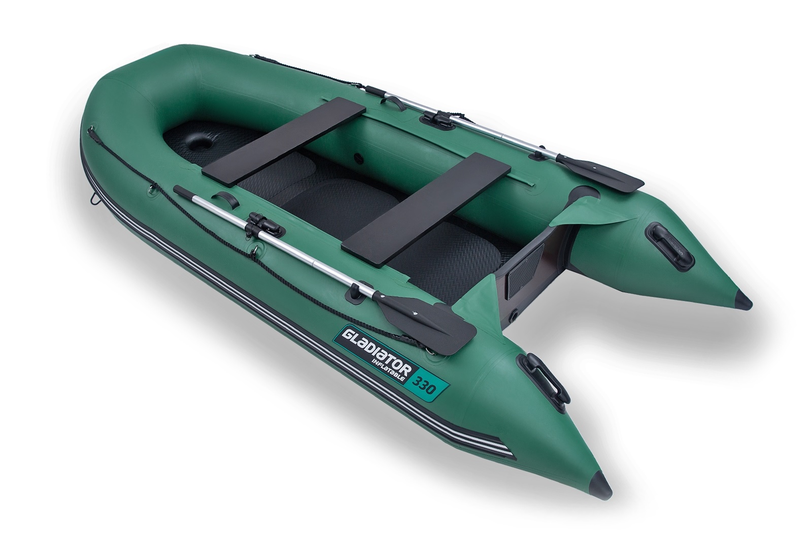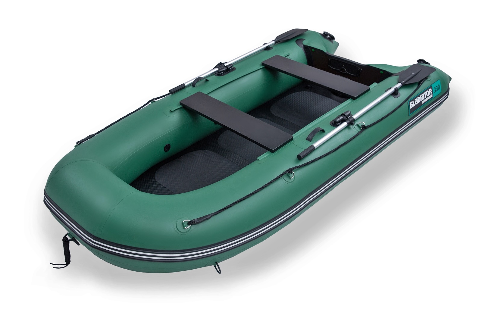 Kompaktný a ľahký čln s vysokotlakovou nafukovacou podlahou a nafukovacím kýlom. Nezaberie veľa času ani energie na prípravu a vďaka absencii skladacej podlahy z ťažkej preglejky či hliníka, je manipulácia veľmi jednoduchá. Dno je vyrobené zo silnejšieho materiálu a má kýlovú výstuhu aj výstuhy zo spodnej časti valcov pre dlhšiu životnosť. Gladiator B330 AD je spoľahlivý parťák na rekreáciu s rodinou a deťmi, je vhodný aj ako tender k veľkým jachtám, ale ocenia ho aj rybári.