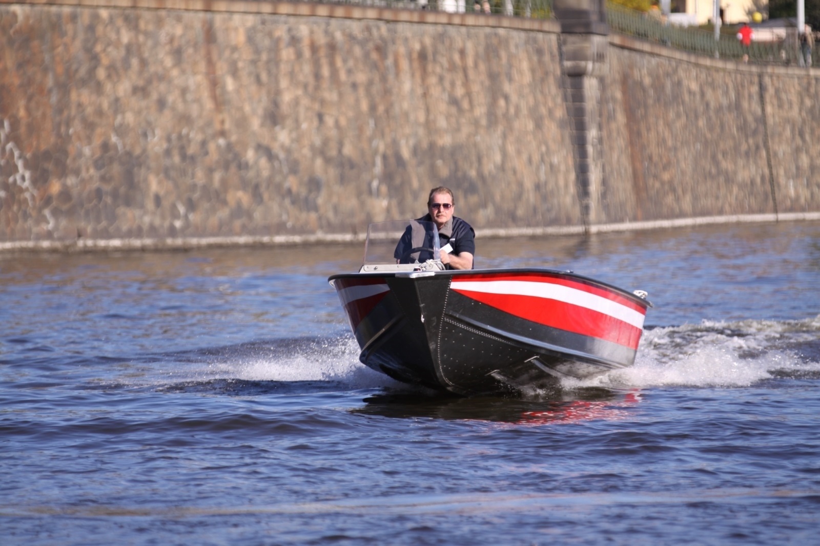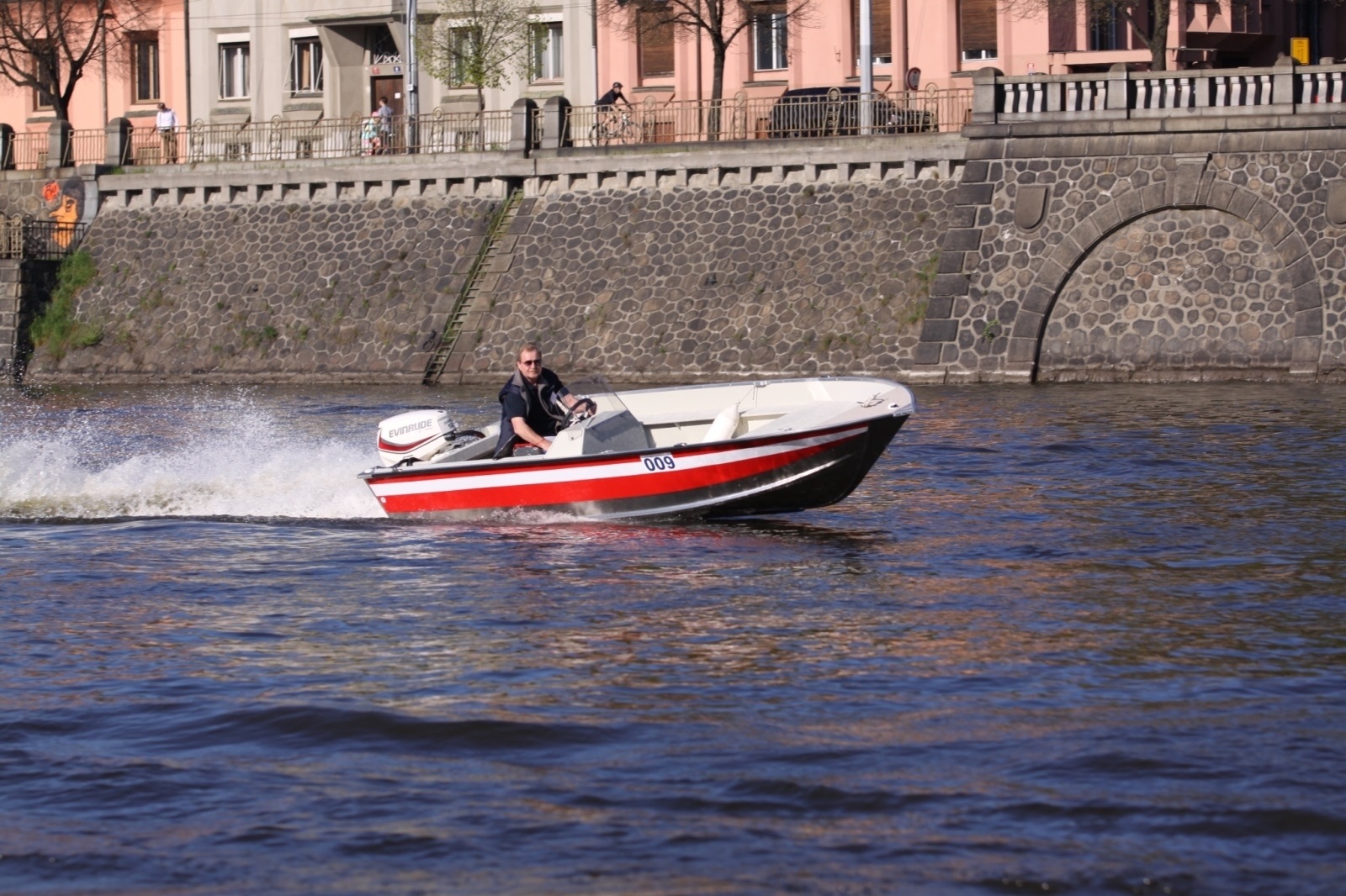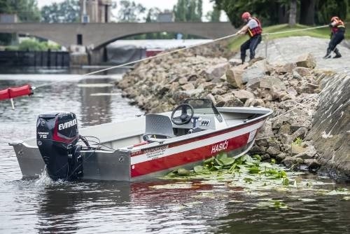 • Vďaka pevnej konštrukcii je možné aj nabehnutie na breh (ilustračný obrázok - loď s konzolou)