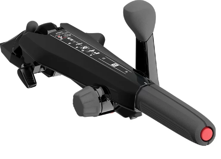 Tradične sú rukoväte na ovládanie namontované na vonkajšej strane motora, určené na ľavostrannú prevádzku. Avšak užívateľské prieskumy zistili, že významné percento vodákov uprednostňuje rukoväť ovládanú pravou rukou. Inovatívne multifunkcné ručné riadenie umožňuje horizontálne nastavenie uhla riadenia, poskytuje komfort a jednoduchú obsluhu. Otočná rukoväť môže byť nastavená na ovládanie vpravo alebo vľavo. Viete ľahko riadiť čln bez ohľadu na to, kde sedíte. Tlačidlo zastavenia sa nachádza na konci rukoväte riadenia.