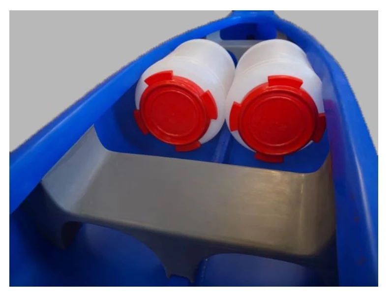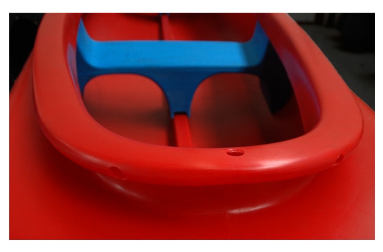 Jednoduchá manipulácia vďaka integrovaným úchytom. Jednoduché vylievanie vody cez otvory v límci bez nutnosti dvíhať špičky. Oká pre uväzovanie bagáže v kýlu a v límci lode.